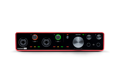 A sound card or audio interface is used when recording musical instruments and vocals through a computer. There are many types of audio interfaces on the market, but typically there is the option to connect jack, XLR or phono cables. If you have a small home studio or a mobile studio, many people prefer USB audio interfaces such as Focusrite Scarlett 2i2, as it is easy to connect and use.