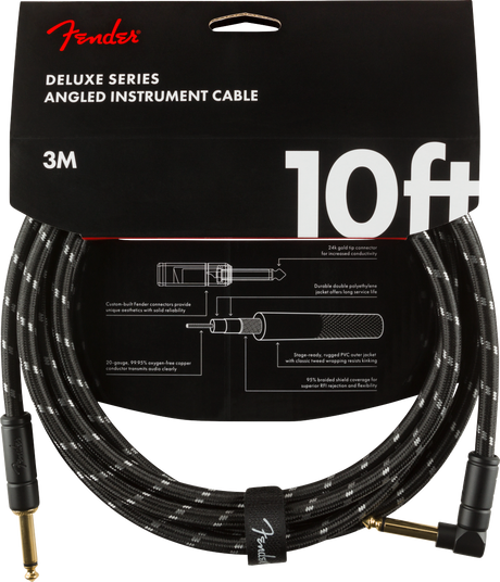 Fender Deluxe Instrument Cable, 3m, angled connector (Black Tweed)