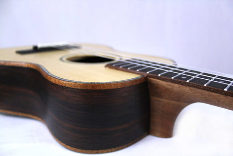 The Sopranino ukulele is the smallest of the family with a length of only 32-41 cm. This model dates back to 1990 and is still incredibly popular today. The small size gives the instrument a penetrating sound that stands out beautifully in larger ensembles or bands. The sopranino is tuned: DGHE and is therefore the highest sounding in the ukulele family