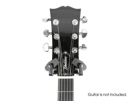 Our guitar wall mounts are screw-mounted to the wall and fit almost all guitars. Guitar wall mounts are made of iron, which makes them solid, and they are covered with a foam that protects your guitar from scratches and ensures it doesn't fall out of your guitar holder. Be aware of the wall you're screwing the mount into - if it's drywall, take care and use the right screws and rawlplugs - it's also important to use rawlplugs when hanging in brick and concrete walls. Test always hold the mount with your hand and a heavy weight downwards before hanging your guitar - it's more fun to have the mount torn down than to have the guitar fall when you least expect it!