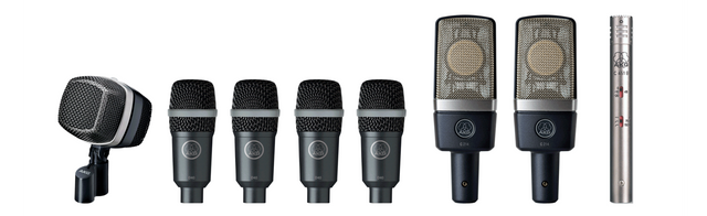 AKG Batería Premium es un conjunto completo de micrófonos para actuaciones en vivo y grabaciones de estudio. Los micrófonos están diseñados para la grabación de sonido de diferentes tambores.