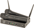 - Sistema UHF de 2 canales compuesto por 2 transmisores de micrófono de mano y 1 receptor.