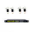 - Wireless microphone system with 4 boom microphones and a single stand receiver