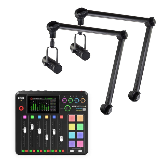 A starter package for 2 people where you get quality products all the way through. 2 podcast microphones and 2 microphone arms from StudioMate.
