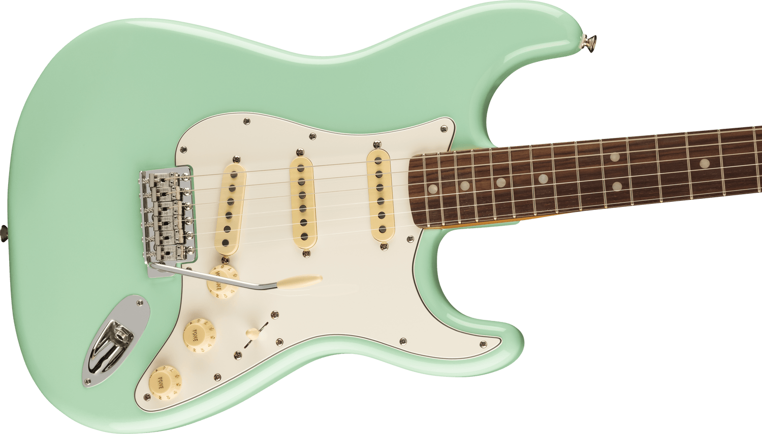 - Vintage-style '70s single-coil pickups, Vintage-style synchronized tremolo