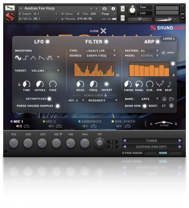 - Flexible and intuitive multi-layer user interface controls, with LFO, filter, glide, and arpeggiator