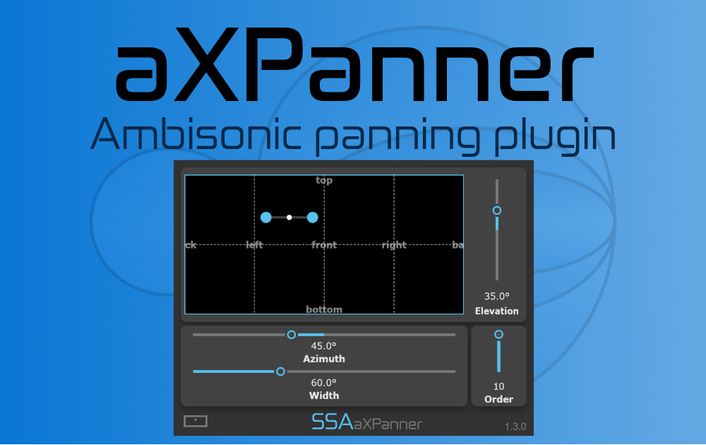 El aXPanner es un codificador Ambisonic que te da control sobre el acimut y la elevación de la fuente de sonido, así como el ancho entre los canales de entrada estéreo. La elección de dos interfaces (equirectangular y de arriba hacia abajo) te permite colocar fácilmente tu sonido en el espacio para crear tu mundo de audio inmersivo. Está disponible en tres variaciones: de primer orden, de tercer orden y de décimo orden.