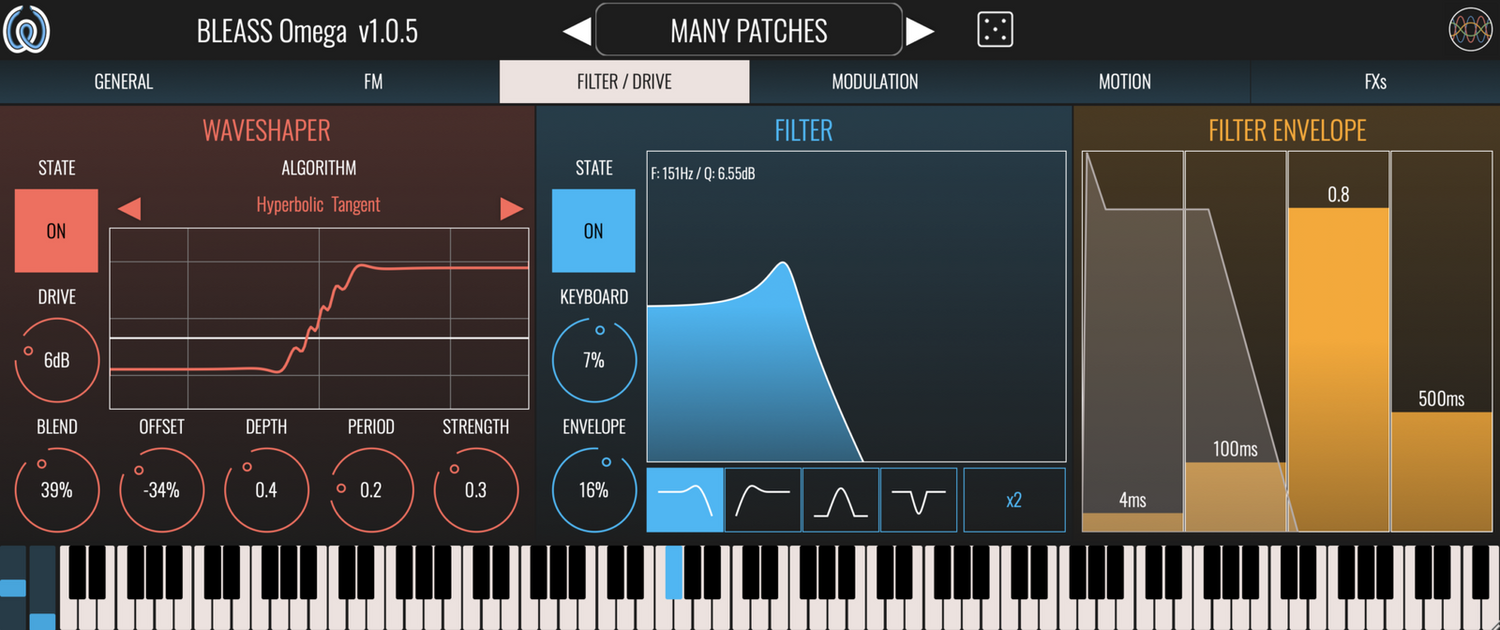 - ANALOGUE-STYLE WAVESHAPER AND MULTI-MODE FILTER: Adds analogue-like flavors to FM tones, including filter sweeps, distortions, and resonances.