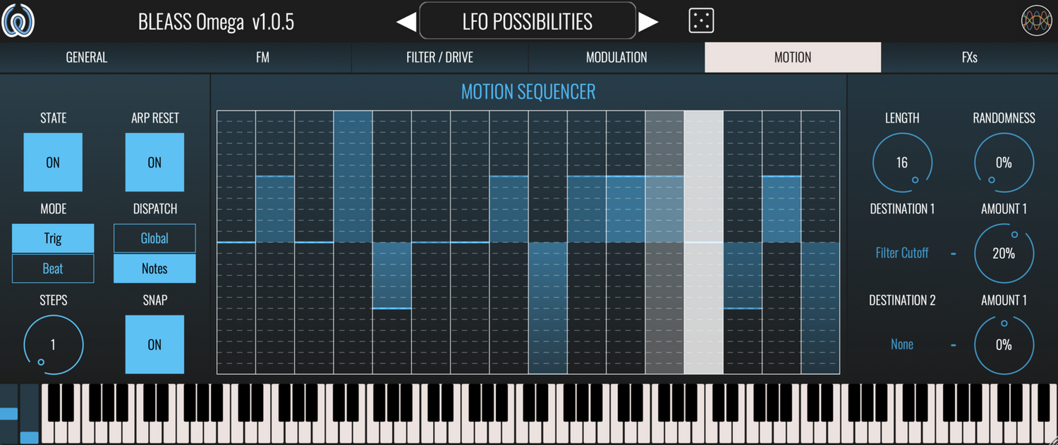 - MOTION SEQUENCER: A unique feature that generates rhythmic movement and repeating modulation patterns assignable to various parameters.
