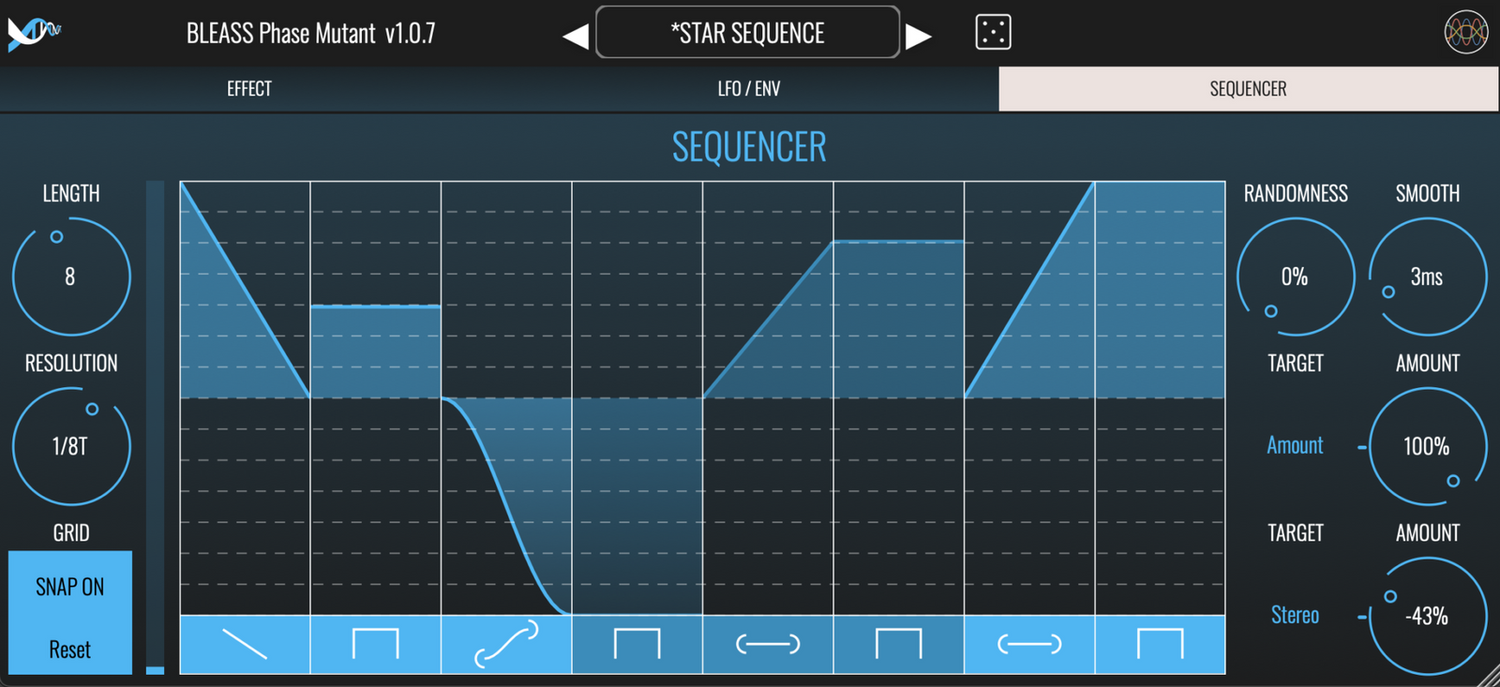 - WAVEFORM CONTROL Morphs between sine, triangle, saw, and square waves, with phase offset for stereo spread, enhancing sound design flexibility.