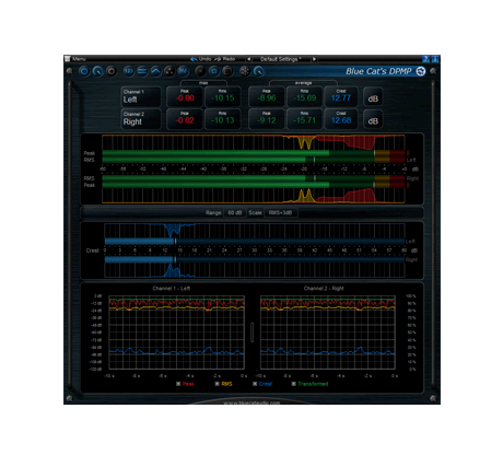Blue Cat's DP Meter Pro (DPMP) es una herramienta de análisis de audio única que combina medidores de audio muy flexibles y personalizables con avanzadas capacidades de control de side chaining gracias a sus salidas MIDI y de automatización.