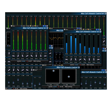 El Control Remoto de Blue Cat es un conjunto de plug-ins que te permite controlar y monitorear en tiempo real varios plug-ins o dispositivos controlables por MIDI desde una única interfaz de usuario personalizable.