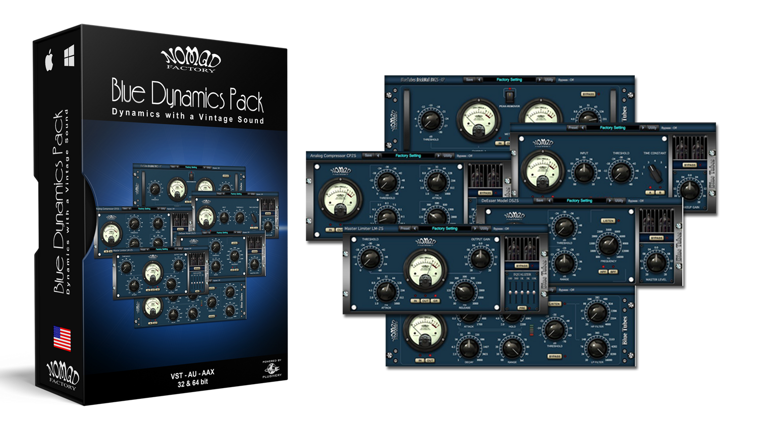 This bundle recreates the warm sound qualities of classic dynamic analog hardware. The sound quality of Blue Dynamics pack is nothing short of amazing. All 6 plug-ins provide a simple and functional vintage-style interface, as well as low CPU consumption for lightening-fast processing.