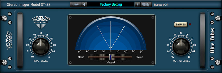 The BT Stereo Imager ST2S provides precise control over the width of the stereo field. This graphically striking device enables you to visualize the width of the stereo sound stage. Some stereo tracks may require special treatment in terms of stereo width. The Stereo Imager gives you a simple way to manipulate the spread of the stereo tracks while receiving visual feedback on your changes.