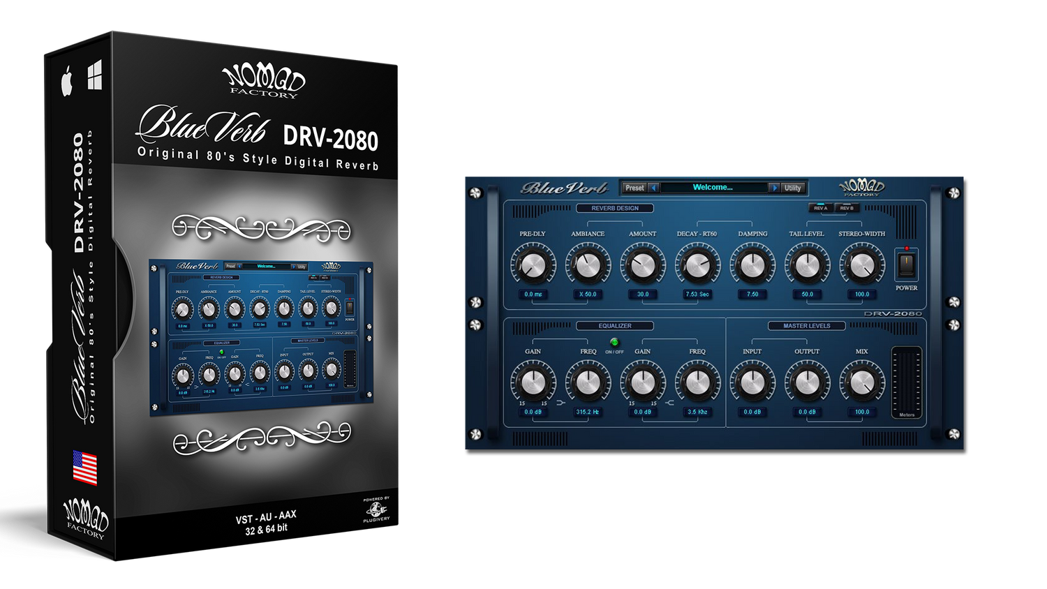 The Nomad Factory BlueVerb DRV-2080 is a vintage-style world-class recording studio reverb.