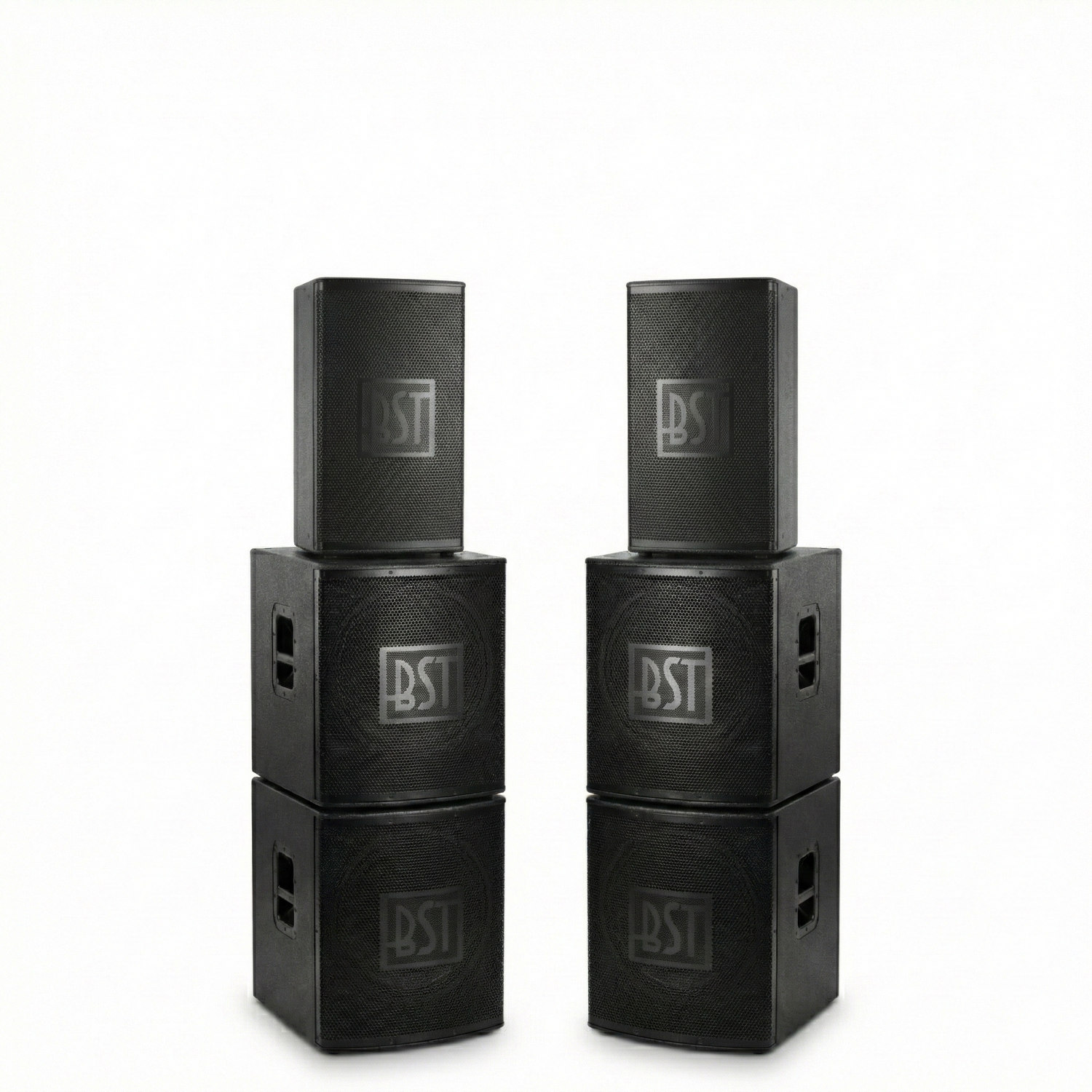 El gabinete de madera extra grande y sólido soporta un uso profesional intenso, transporte y carga – una solución confiable para eventos, conciertos e instalaciones