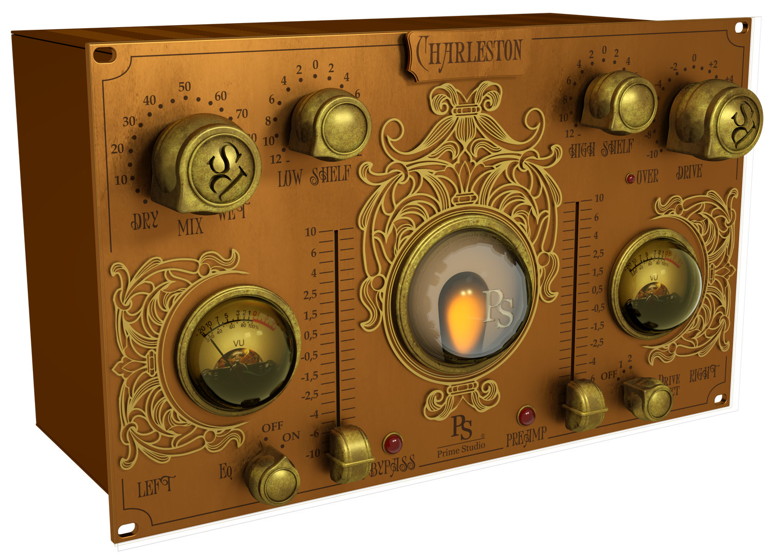 ¿Estás listo para conocer al primo de Charly? Prime Studio® Charleston es un dispositivo de suma basado en una variedad de dispositivos analógicos utilizados diariamente como una configuración parcheada en Prime Studio®. Los ecualizadores de estante bajo y estante alto se pueden ajustar según se desee para dar a tus pistas un toque suave. Elige entre dos sonidos de "drive" diferentes y mezcla la distorsión armónica con el botón de Mix para que coincida con la señal original. El sonido del preamplificador también se puede desactivar para hacer que la suma de tus pistas sea aún más flexible. El Magic Eye te muestra cuánta intensidad del efecto está configurada, y el LED Over indica si tu señal de entrada está demasiado alta. Dos faders separados para ajustar finamente los canales izquierdo y derecho completan el plug-in.