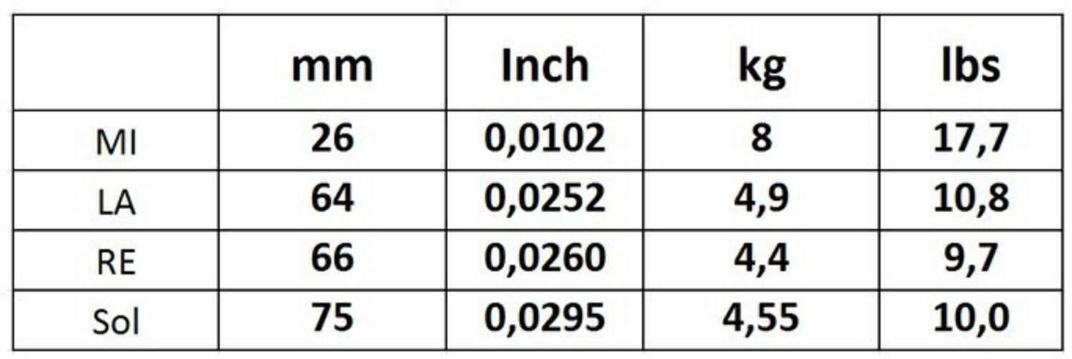 • Almost identical with gut strings concerning sound, density and elasticity