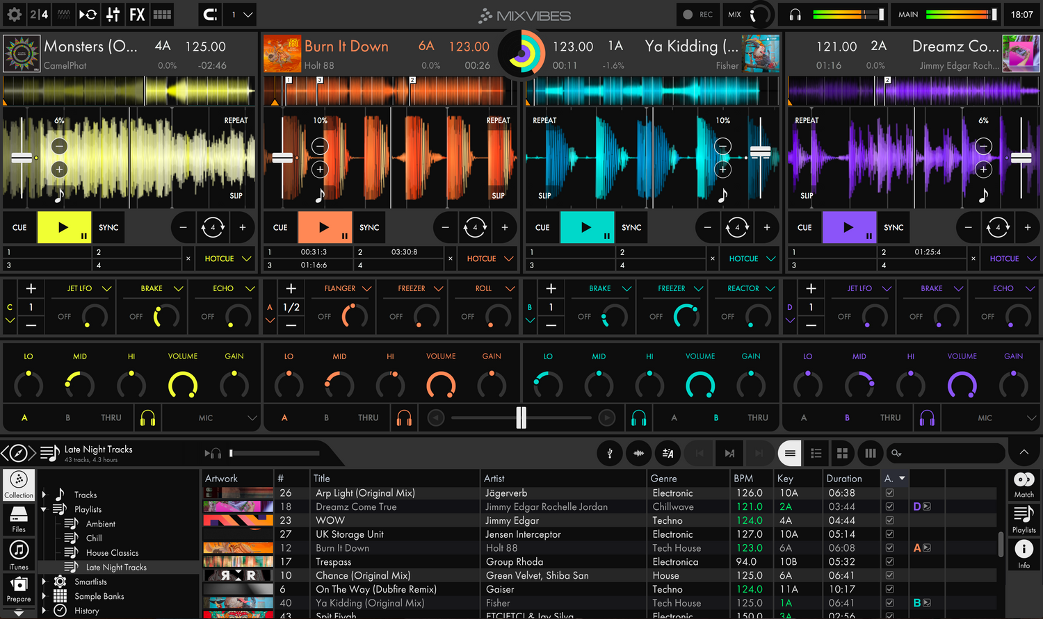Make every mix unique. You can play with 4 player waveforms at the same time and add 3 synchronized audio effects per player. You can also create your own effects using the Tweaker.