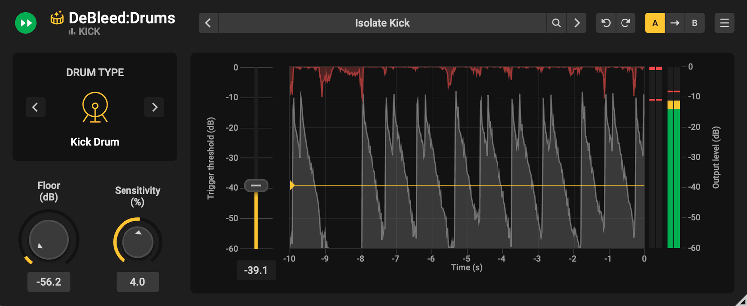 Para obtener resultados óptimos, DeBleed:Drums aprovecha la tecnología de redes neuronales para separar los elementos del kit de batería, como bombos y cajas, mientras que los algoritmos DSP protegen los transitorios para mayor claridad. Su lógica de activación inteligente establece umbrales para eliminar el spill de manera eficiente, ofreciendo una mezcla de batería más limpia y natural.