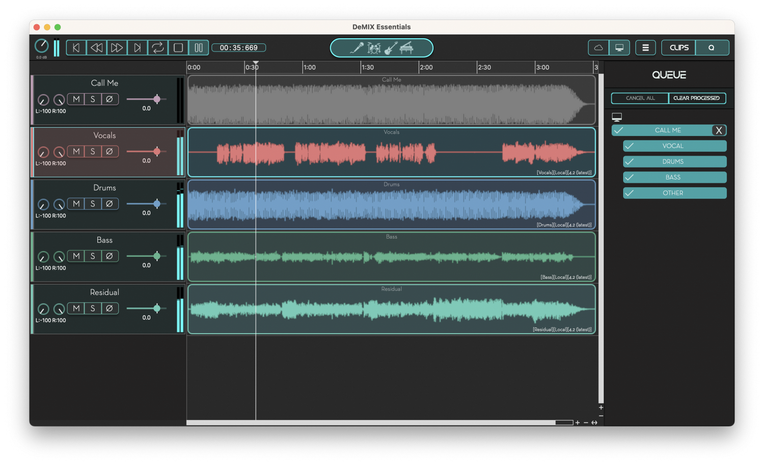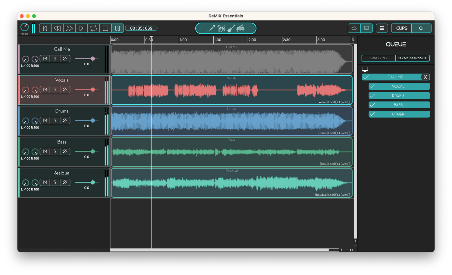 Esta potente herramienta automática de eliminación de voz te permite quitar de forma fácil y rápida las voces, eliminar la guitarra, eliminar la batería y el bajo, ofreciendo nuevas separaciones de alta calidad para remezclar, samplear o crear acapellas y backing tracks.