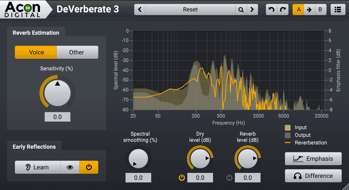 DeVerberate es un plugin de reducción de reverberación que puede atenuar o aumentar la reverberación que ya está presente en el material grabado. La nueva versión incluye un algoritmo completamente nuevo basado en aprendizaje profundo para la reducción automática de reverberación del diálogo grabado.