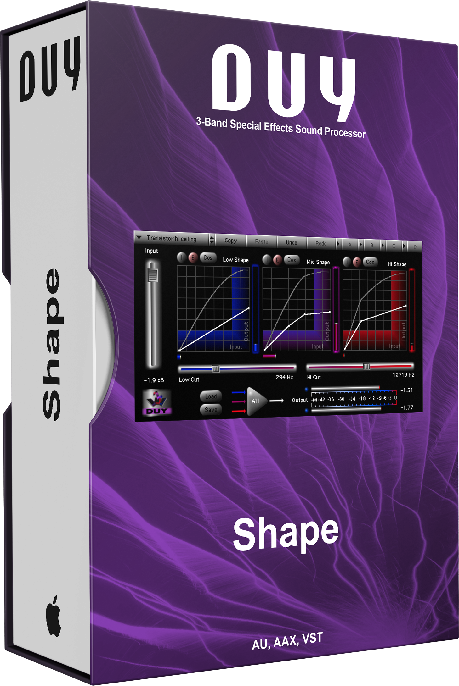 Duy Shape is a unique 3 band sound processor that provides exclusive and unlimited special effects for your tracks.