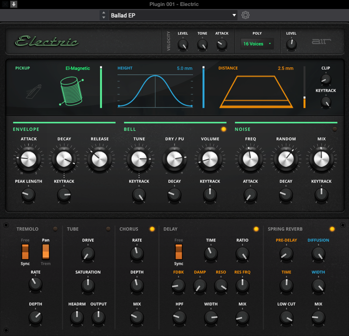 AIR Electric plugin is your new complete electric piano collection. Choose from a comprehensive array of legendary keyboards like Rhodes, Wurlitzers, FM keyboards, and more developed over decades of research. Electric proudly builds upon the legacy of excellence of AIR Velvet, considered the reference electronic Piano Instrument for Avids Protools with a new range of powerful features and sounds.