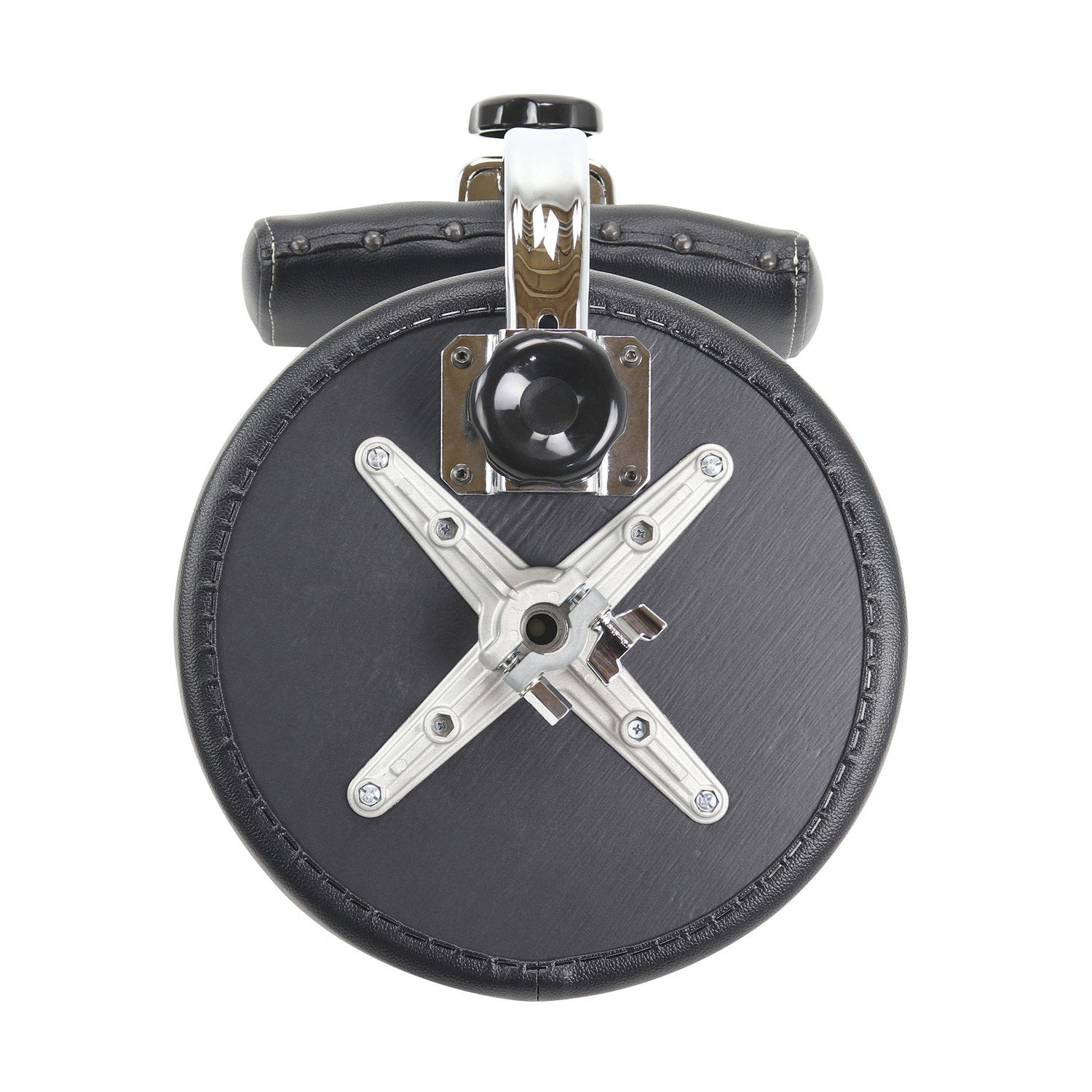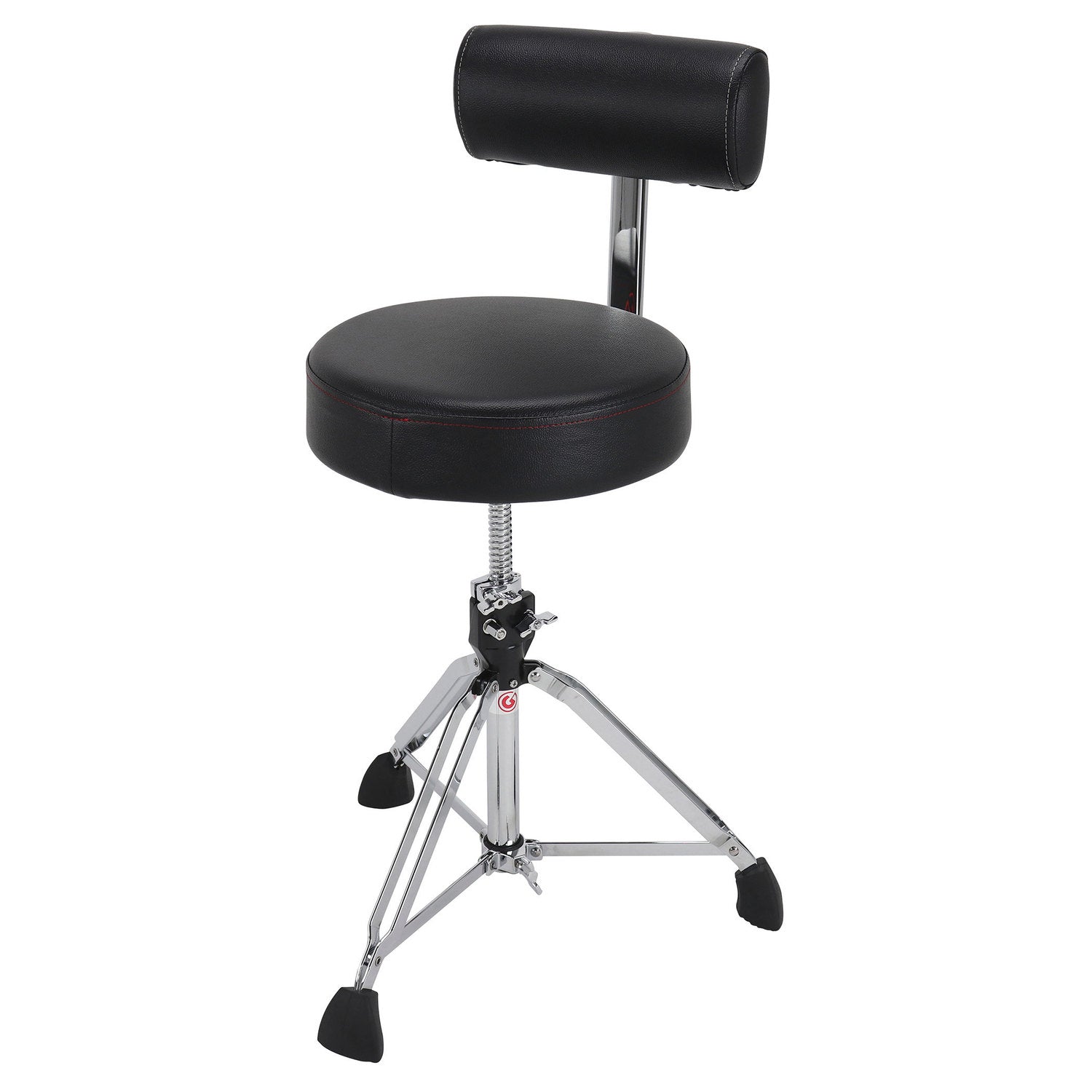 - Drum stool with round seat and adjustable backrest for increased comfort