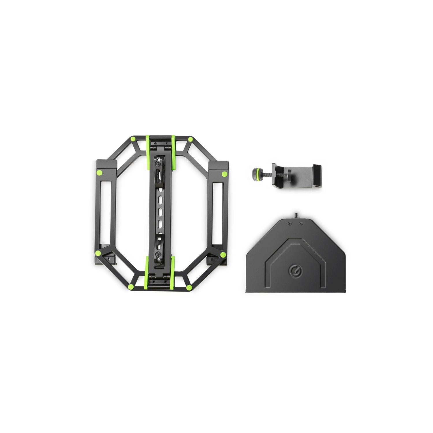 Como músico o DJ, es importante que todos tus instrumentos, tu equipo y tus accesorios sean compactos, estén bien empaquetados y sean fáciles de transportar en la furgoneta cuando estás en movimiento. Gravity® Rapid Desk Set 2 combina el probado y estable KSX 2 RD con el igualmente probado soporte para laptop plegable LTS 01 B y la bolsa de transporte BG X2 RDB. Con solo unos pocos pasos sencillos, puedes crear una mesa robusta y práctica que permite colocar tu equipo perfectamente con el soporte para laptop, y que es fácil y seguro de transportar con la bolsa de transporte.