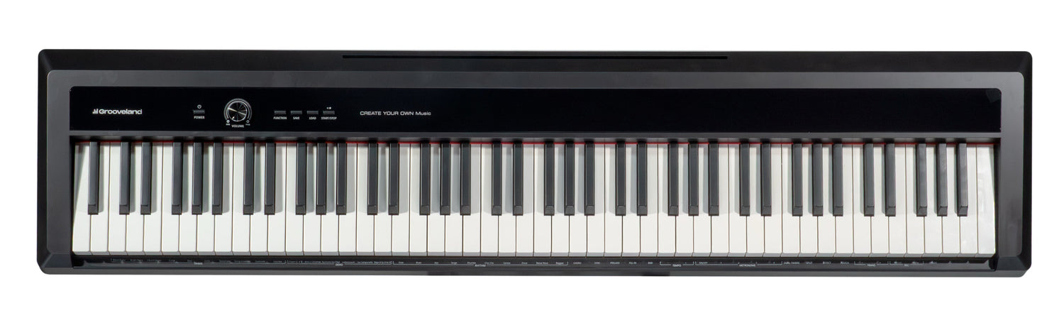 Grooveland P450 also features 6 demo songs, main volume control, and dual headphone output, allowing two people to play or practice together without disturbing the surroundings.