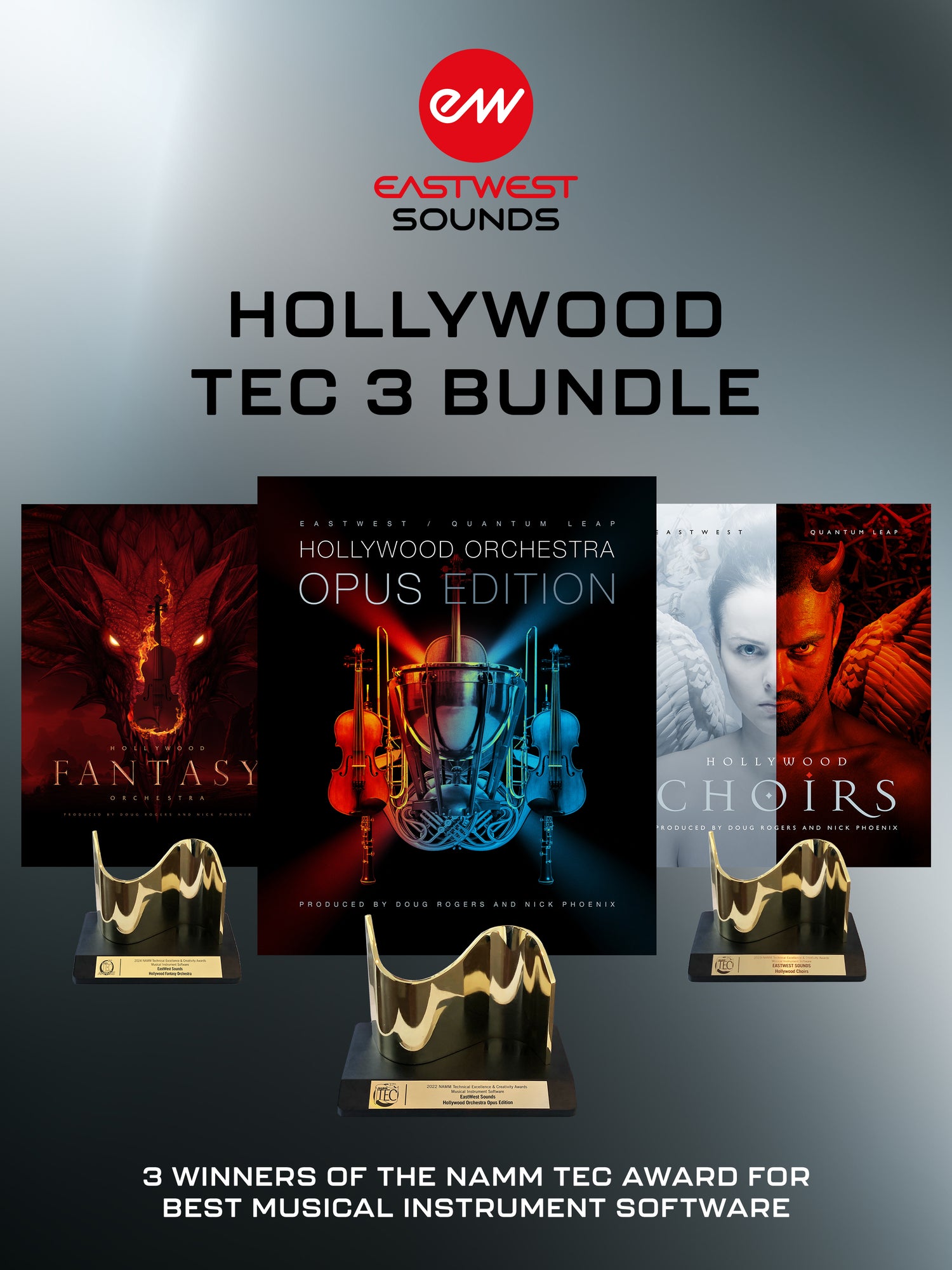 El Hollywood TEC 3 Bundle reúne un conjunto de herramientas sonoras galardonadas, diseñadas para compositores y productores que trabajan en las industrias de la música, el cine, la televisión y los videojuegos. El paquete consta de 3 títulos, cada uno de los cuales ha ganado un NAMM TEC Award por Mejor Software de Instrumento Musical en los últimos 5 años. El combo incluye una colección masiva de instrumentos orquestales y del mundo muestreados de manera prístina, así como un magnífico coro grabado que puede cantar cualquier palabra que escribas, proporcionando una paleta de sonidos sin precedentes para cualquier tipo de trabajo.