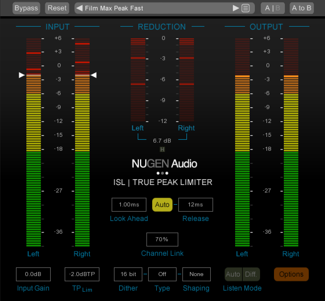 ISL utiliza los algoritmos de True Peak estandarizados de ITU-R B.S. 1770 y estándares relacionados (incluida la detección de True Peak 'afclip' de Apple), y es adecuado para el control de audio para post producción, masterización musical y aplicaciones de transmisión. El limitador de True Peak también se puede utilizar para garantizar que los códecs posteriores (mp3, AAC, etc.) no introduzcan distorsión en la señal.