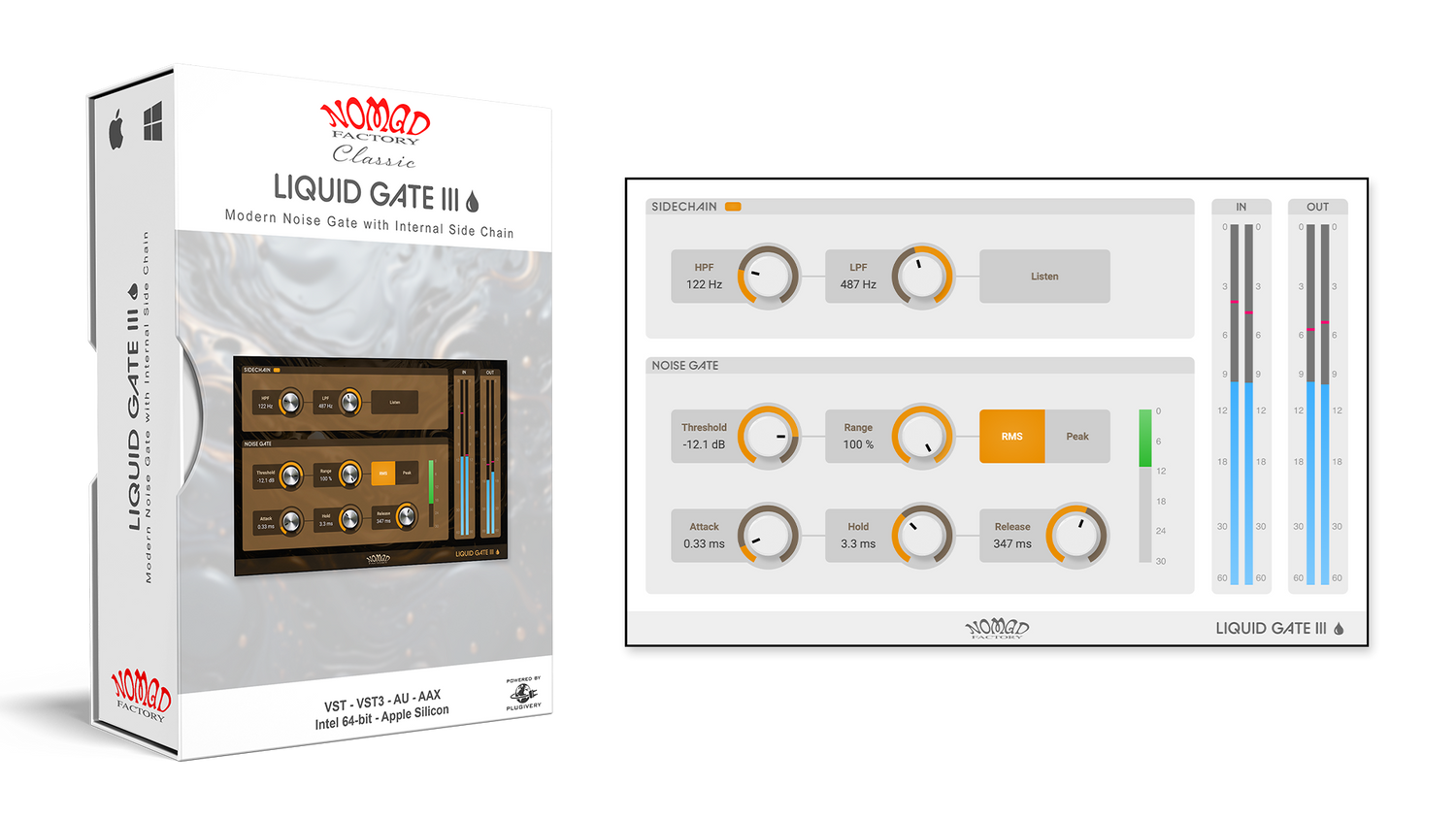 The plugin’s resizable vector interface combines vintage VU meters with a sleek modern layout, blending heritage and innovation. Whether cleaning up vocal tracks or creating tight rhythmic effects, Liquid Gate II delivers consistent, musical results across any workflow.