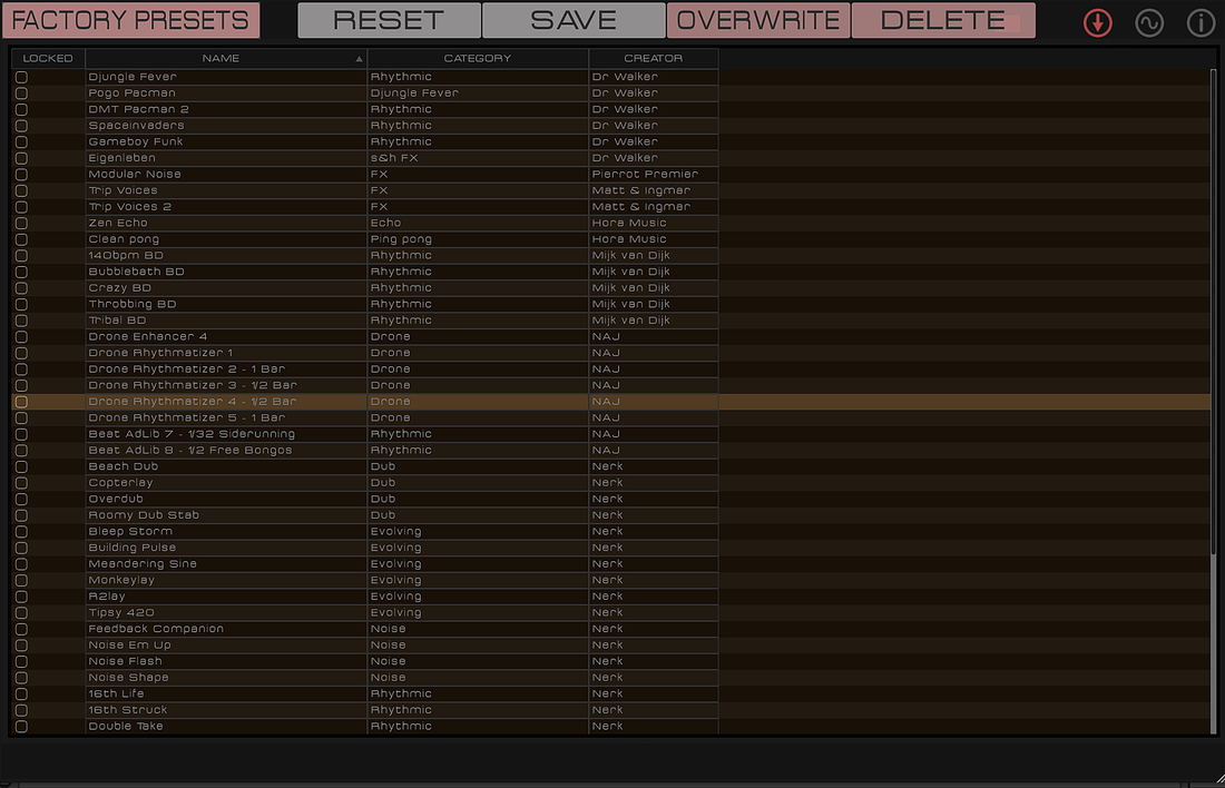 Zen Delay Virtual, ZDV para abreviar, es una evolución digital del popular efecto de hardware Zen Delay de Ninja Tune, fabricado por Erica Synths. Inspirados por un viaje a la innovadora feria de hardware musical de Berlín, Superbooth, Matt Black de Coldcut y su amigo de larga data Dr. Walker (colectivo de artistas Liquid Sky/Air Liquide) imaginaron la emocionante posibilidad de una unidad de efectos de hardware personalizada. El resultado fue la creación del original Zen Delay, la primera unidad de efectos de hardware producida en colaboración con un sello de música electrónica.