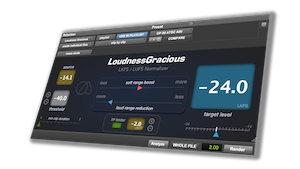 Loudness Gracious une el legendario control de nivel de WaveRider con la detección de sonoridad de Defaulter para ofrecer un control de sonoridad suave y preciso en un flujo de trabajo offline. Ya sea que estés mezclando para transmisión, cine, videojuegos, pódcast o música, Loudness Gracious te lleva a valores exactos de LKFS/LUFS mientras modela suavemente la dinámica con ratios ajustables. ¿El resultado? Sonido limpio y natural — rápido.