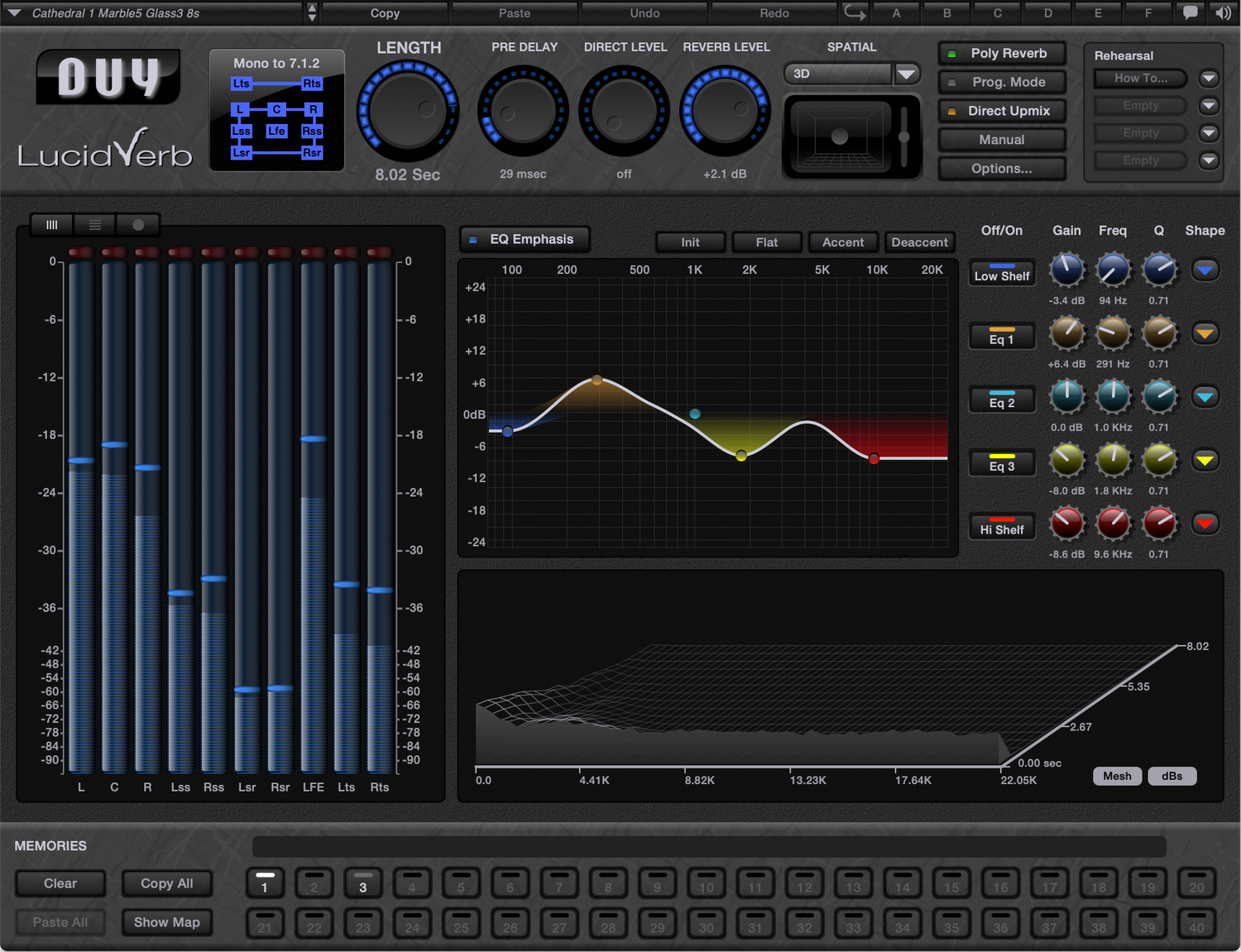LucidVerb es una reverb de convolución híbrida con un motor de modelado sónico propietario "DNA", capaz de reproducir cualquier número de respuestas al impulso totalmente decorrelacionadas a una velocidad fulgurante.