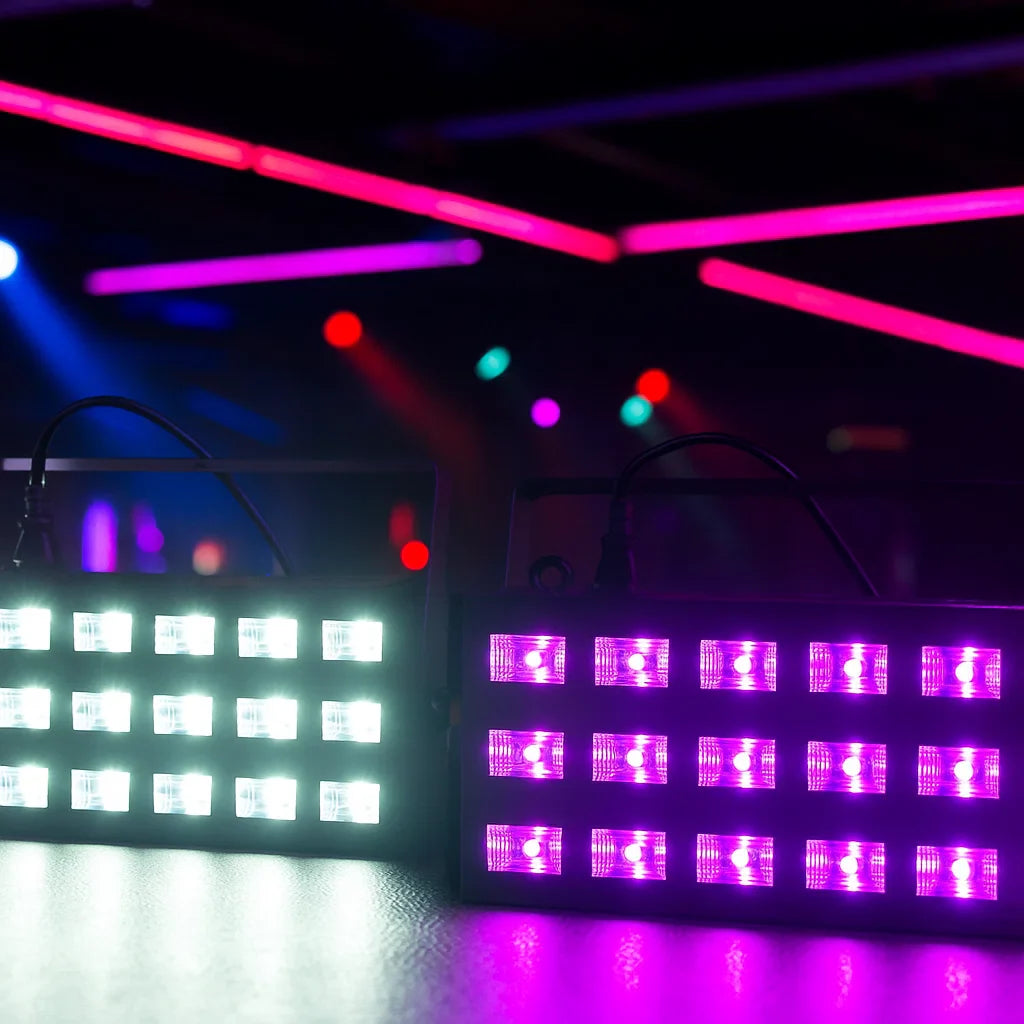 - Supports DMX, sound-activated, auto, and master/slave modes