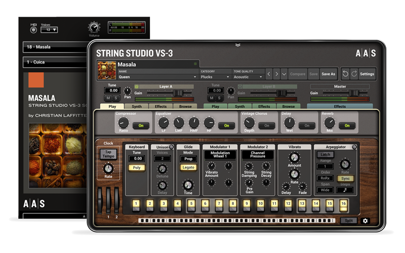 Christian Laffitte returns to the sound design kitchen with his second AAS Sound Bank Series instalment in the form of Masala. Not a mere ensemble of sounds, Masala stages an entire collection of new instruments that you’ll love to learn and discover.