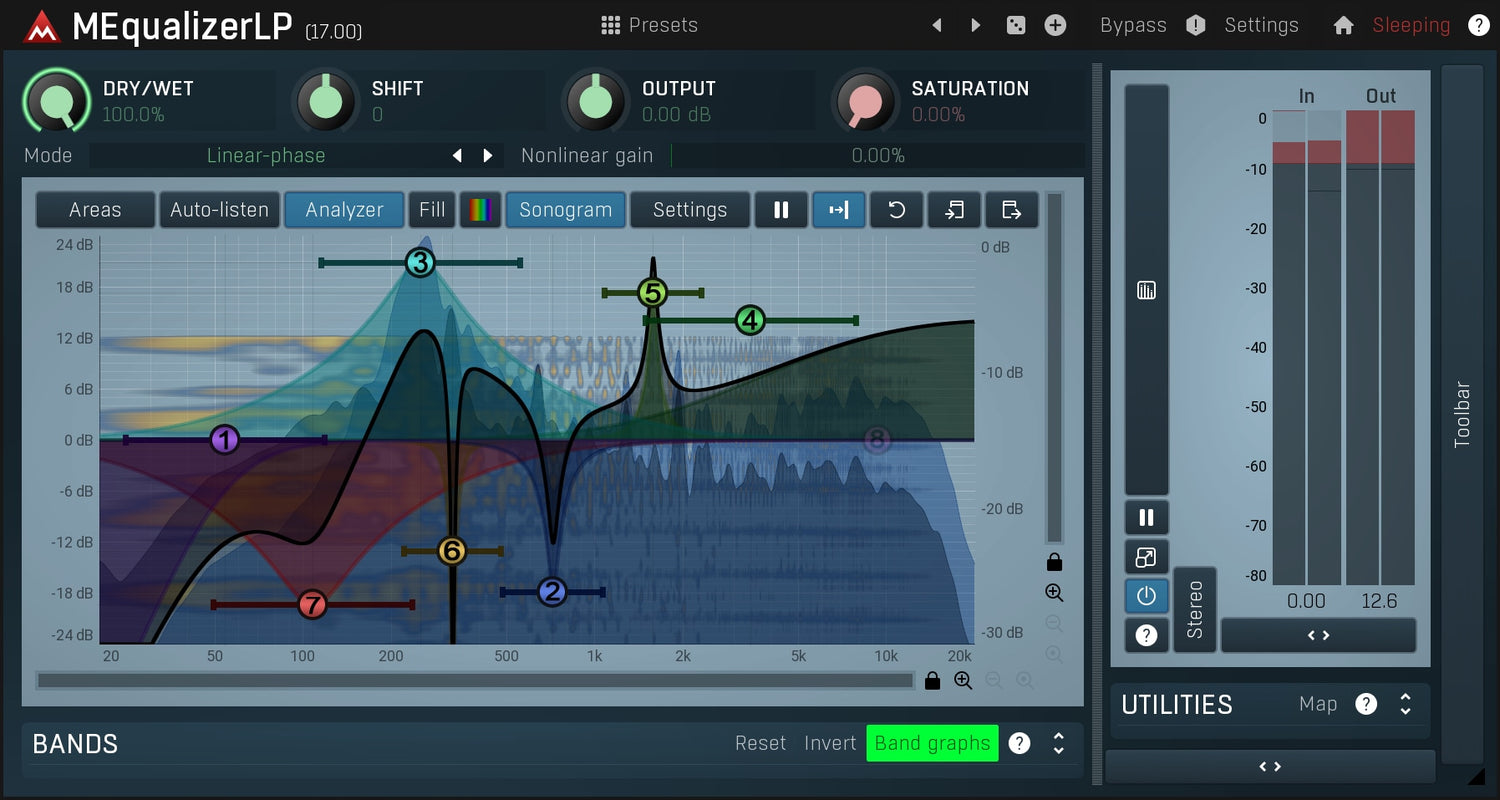 Los ecualizadores de fase lineal te permiten manejar situaciones en las que los ecualizadores de fase mínima normales simplemente no pueden ser utilizados. Pero rara vez suenan realmente bien. ¡MEqualizerLP suena simplemente perfecto!