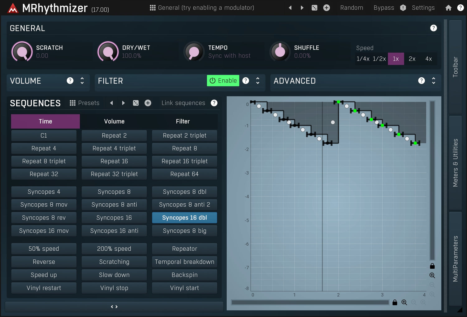 Todos conocemos los scratches, pero con MRhythmizer puedes hacer scratching fácilmente usando un simple control deslizante, ¡o puedes usar moduladores y el plugin lo hará automáticamente!