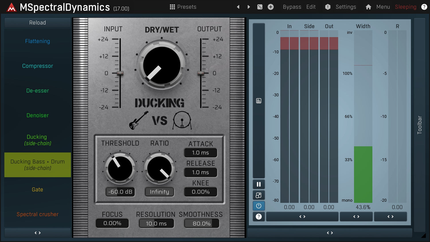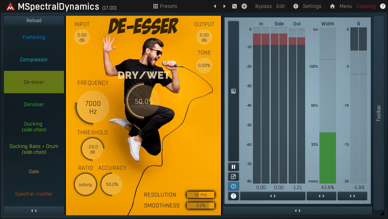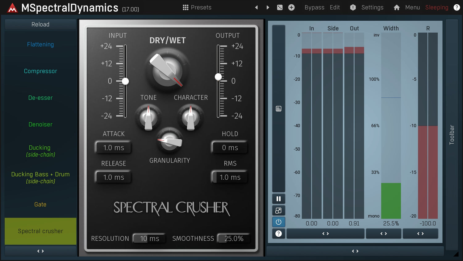 MSpectralDynamics es una verdadera revolución en el procesamiento de audio. Puede aplanar el espectro, prevenir colisiones entre pistas, eliminar ruido y abrir un sinfín de nuevas posibilidades creativas.