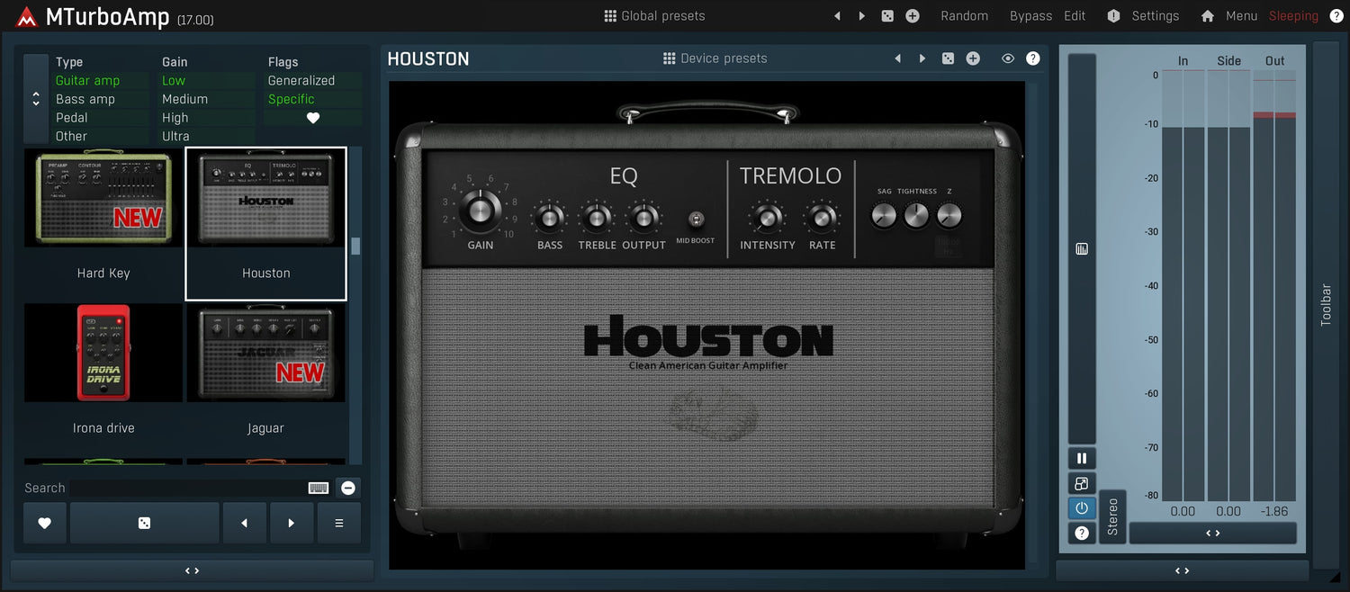 MTurboAmp viene con casi 30 cabezales de amplificadores y una docena de pedales de distorsión. Pero este número cambiará constantemente - con cada lanzamiento - porque no dejamos de trabajar en nuevos dispositivos.