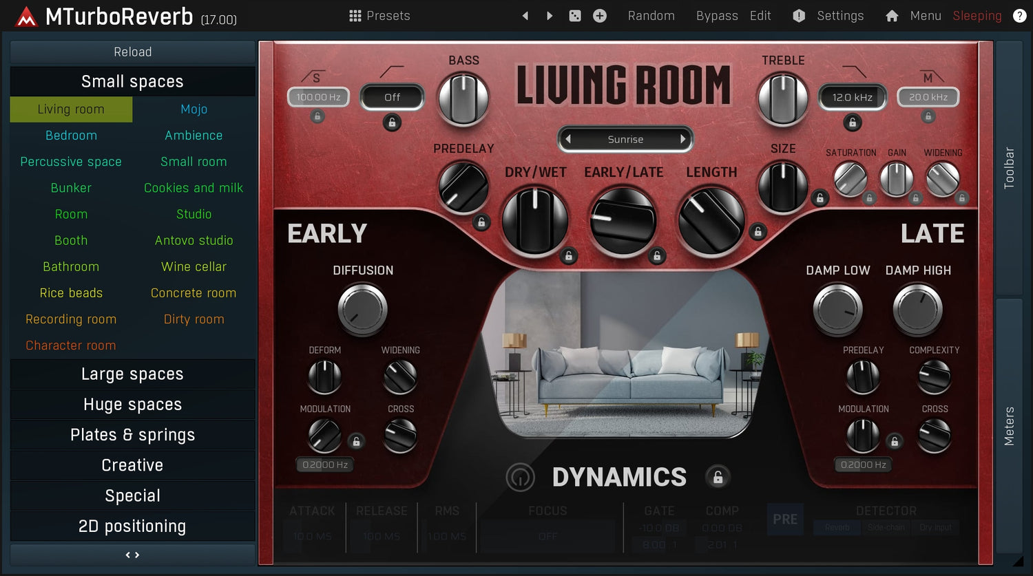 MTurboReverbLE es una edición de nuestro revolucionario reverb algorítmico MTurboReverb, a un precio más bajo, pero tiene algunas limitaciones (ver más abajo).