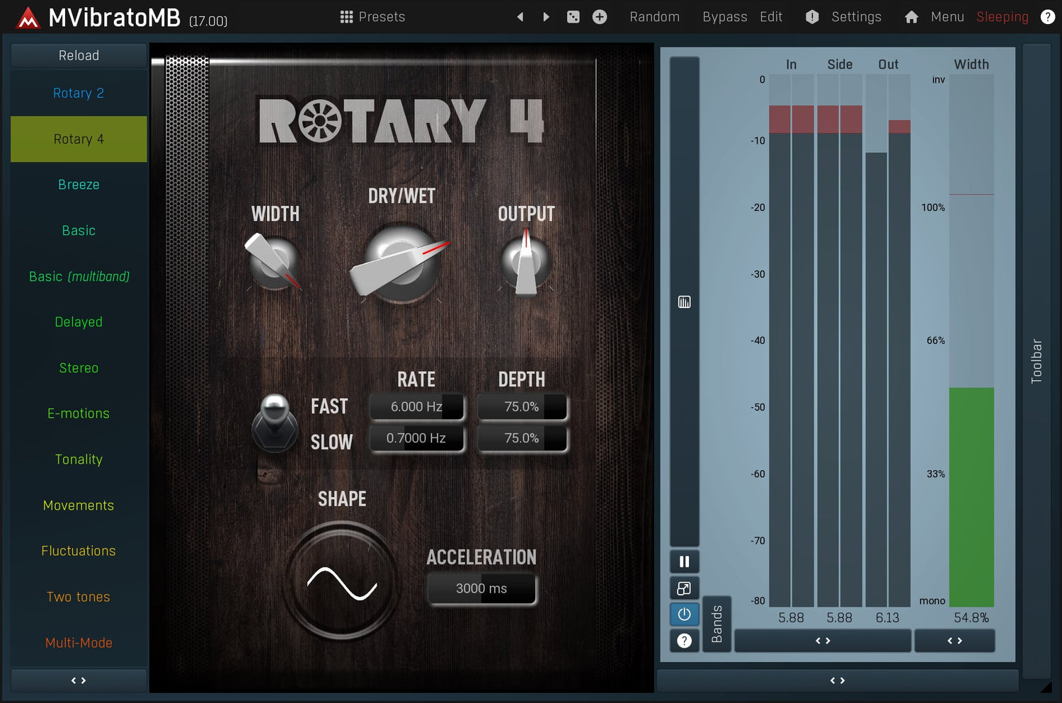 Los efectos de vibrato rara vez se utilizan, pero este es diferente. MVibratoMB también es un potente simulador rotatorio, que es perfecto para todo, desde órganos hasta guitarras. Y la calidad de audio es simplemente la mejor del mercado.