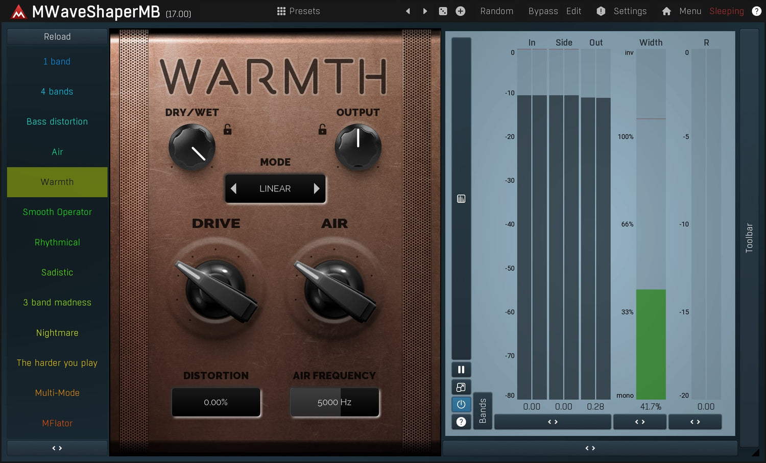 Los waveshapers son los módulos de distorsión básicos, pero pueden ser bastante limitados. Pero con MWaveShaperMB puedes dibujar tus propias formas y procesar hasta 6 bandas por separado. Perfecto para los manipuladores de sonido que buscan una distorsión realmente original.