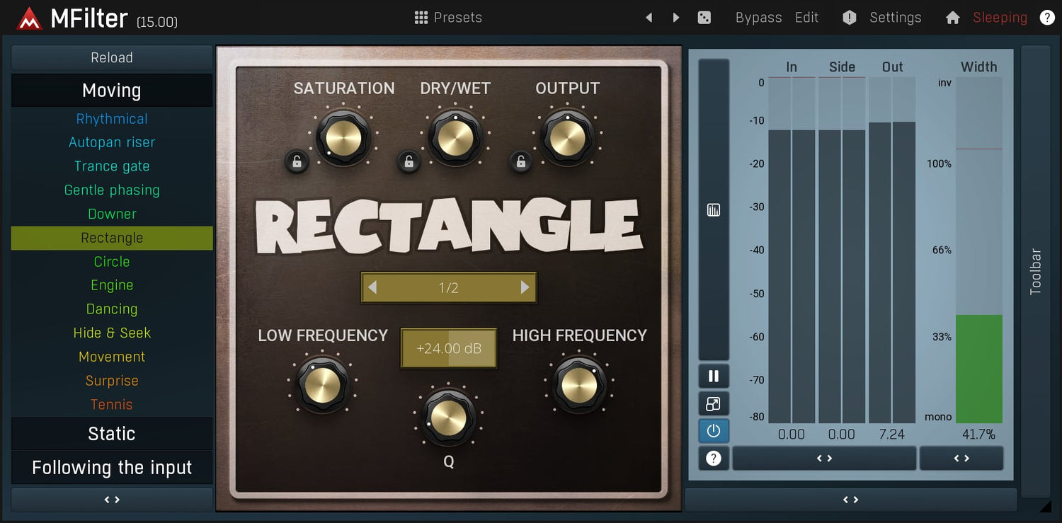 Whenever you need to add some movement to an otherwise static sound, a filter is one of the first processors to try. MFilter can probably do more than you ever think a filter would be capable of.
