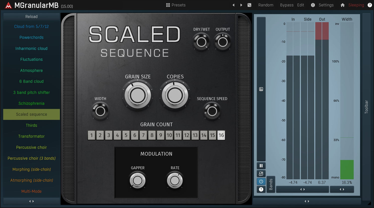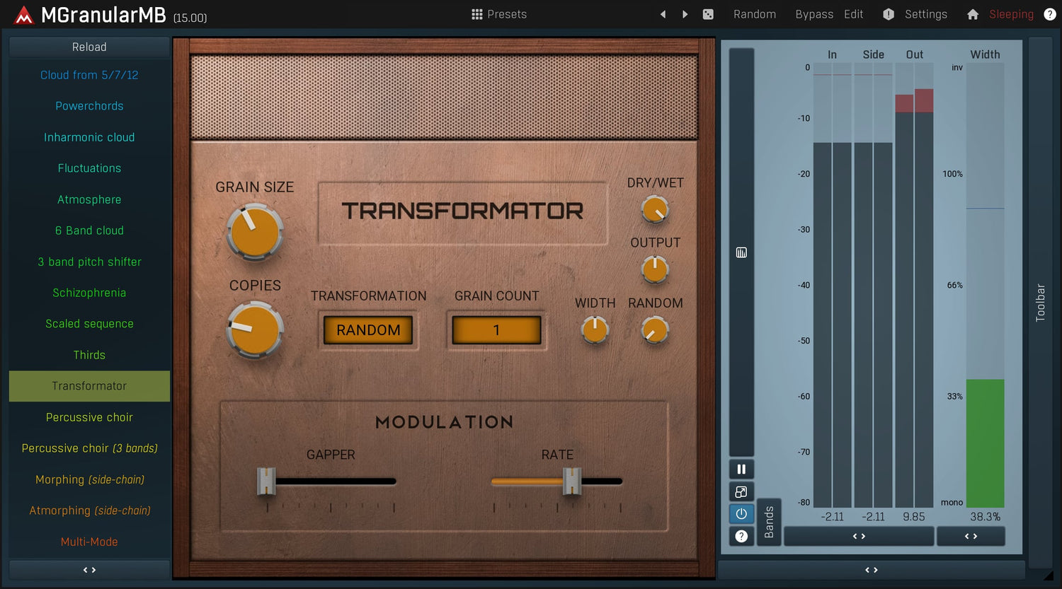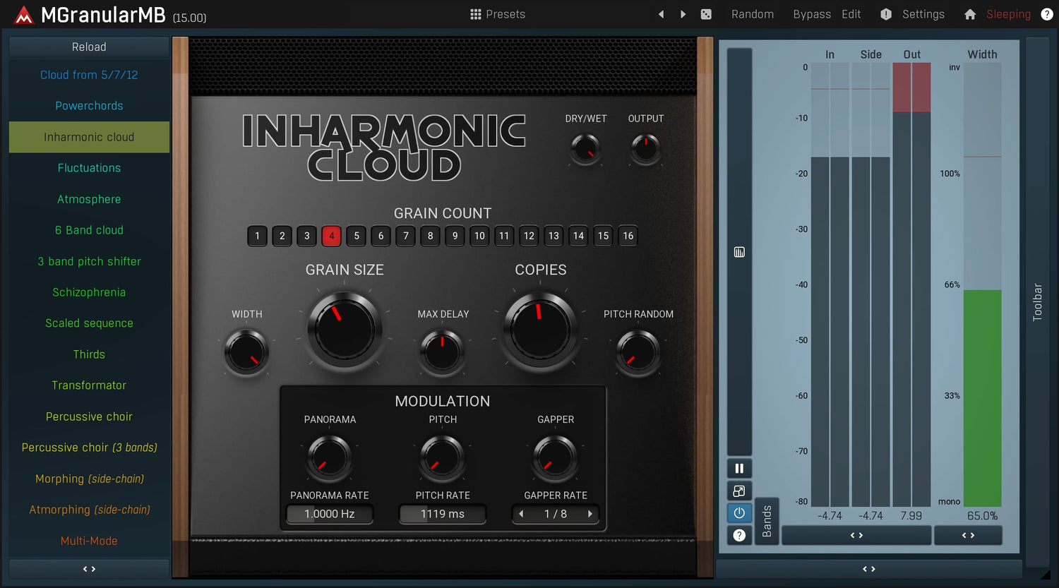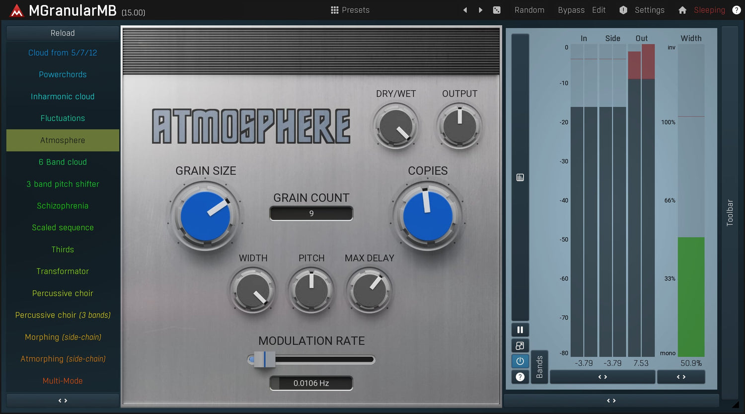 MMultiBandGranular is an extremely versatile granular resynthesizer, which can make your lead sound like a pad, make your drums more powerful plus much more. The plugin cuts your audio material into small pieces and creates an entirely new sound from them. In multiple bands of course.