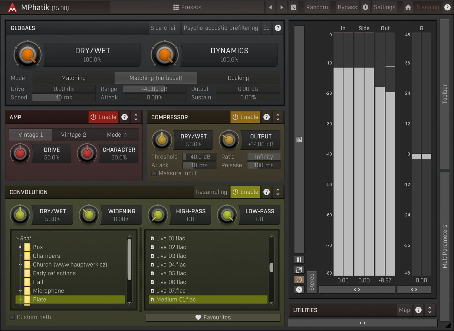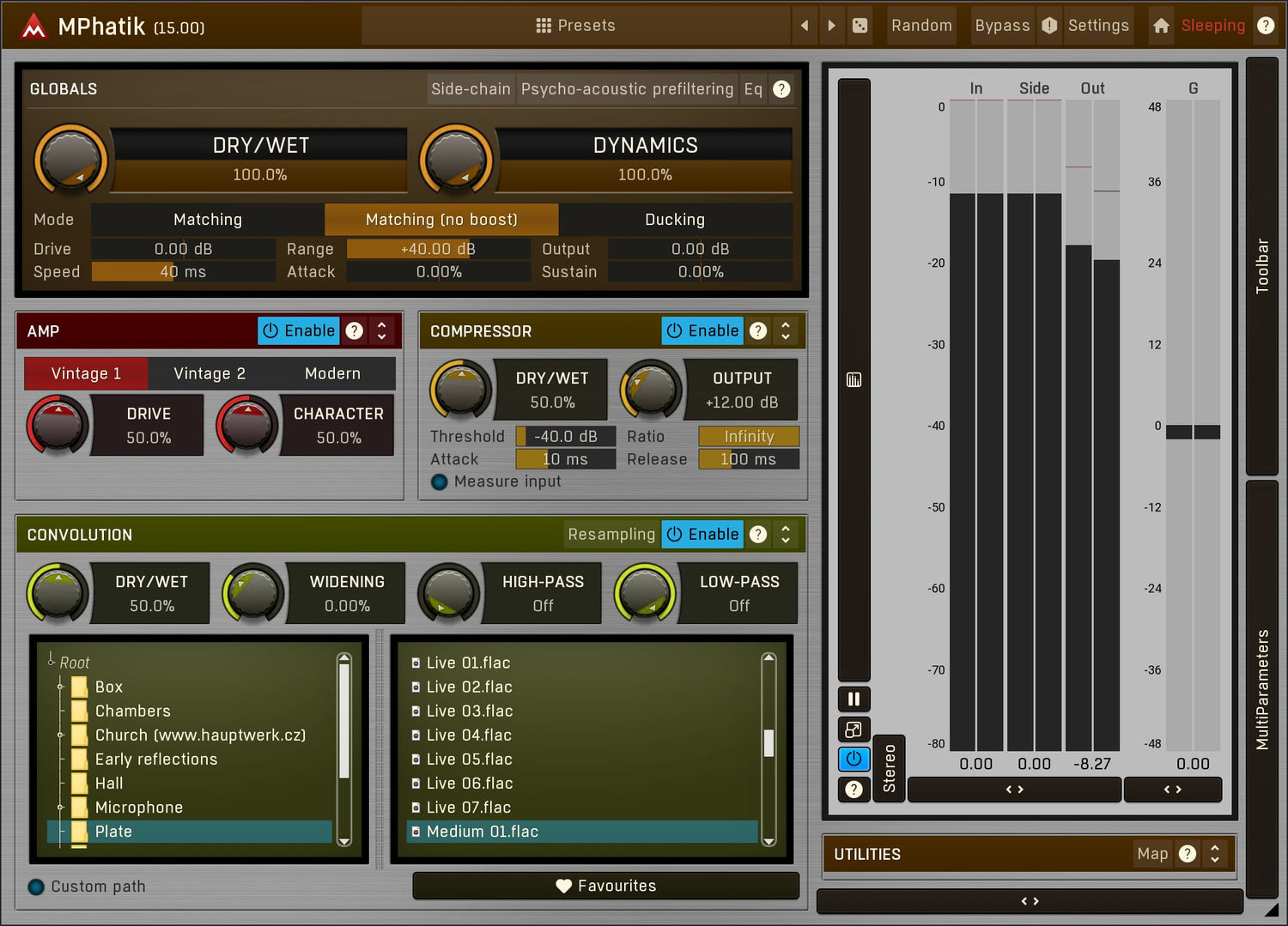 MPhatik is a unique dynamic multi-effect featuring an amp, convolution and a compressor, which lets you warm up your audio and then restore the original dynamics. And that's just the beginning without being creative yet.