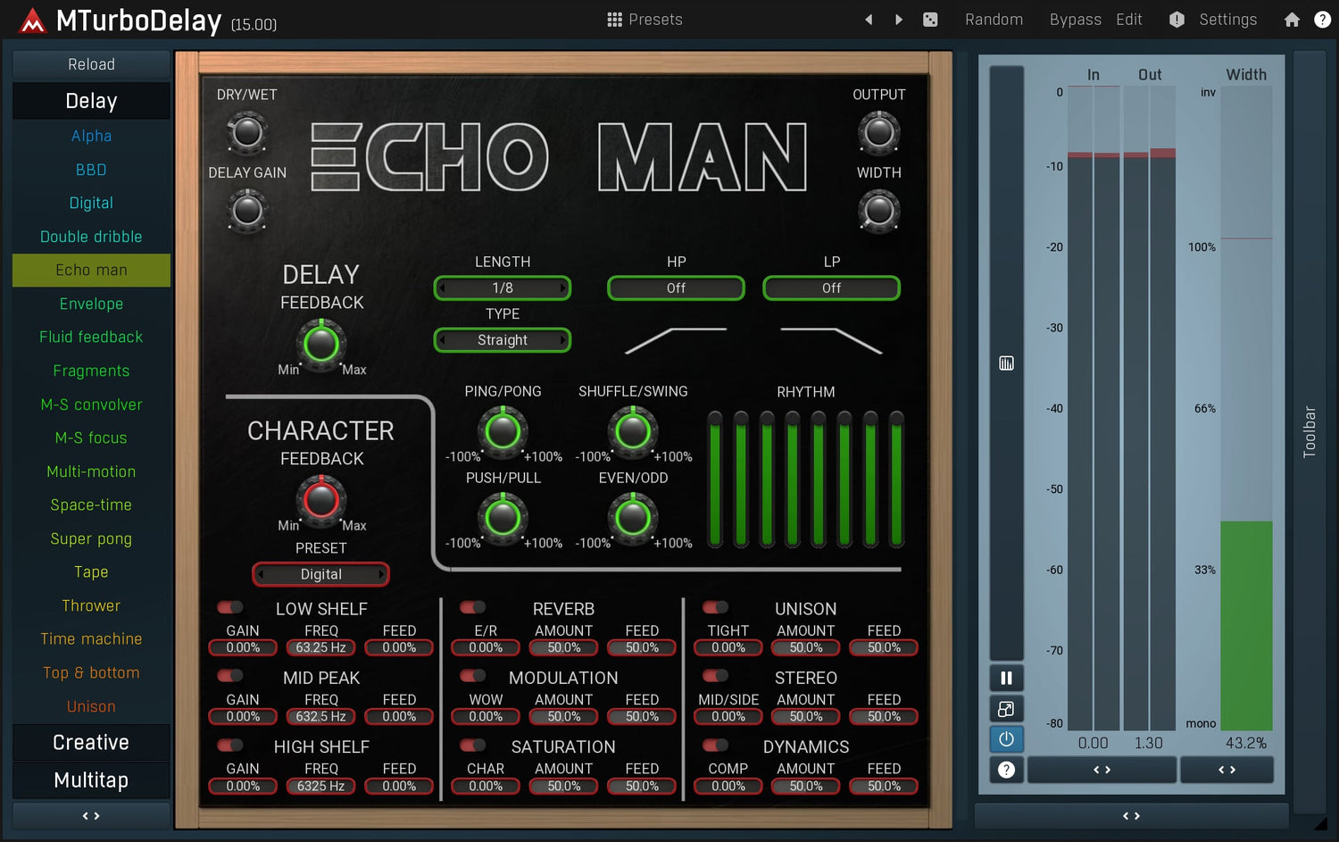 MTurboDelay is the ultimate delay providing 40 delay plugins in a single beast. That means 40 completely different delay designs inspired by both analog and digital worlds, brought to a whole new level.